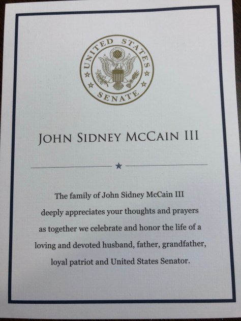 So my photo archive of the experience is limited, but the thoughts running through my mind remain. I hope that those who read this short blurb will be inspired to do their own reflection on the life and service of Senator John McCain. I am honored to have voted for him as President in the 2008 election and thankful for his years of service in the military and in public office.